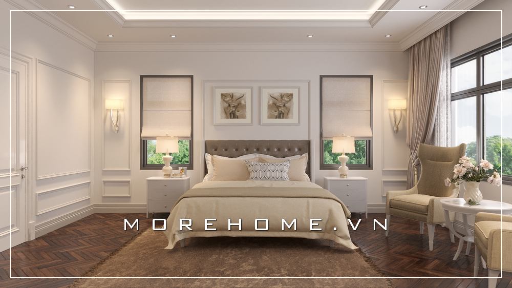 Dưới đây là hình ảnh các mẫu giường ngủ biệt thự đẹp được Morehome thực hiện toát lên được vẻ đẹp sang trọng và cá tính cho cả không gian sống. Tham khảo ngay để có thêm gợi ý lựa chọn giường ngủ ưng ý phù hợp với cá tính và không gian sống của chính bạn.