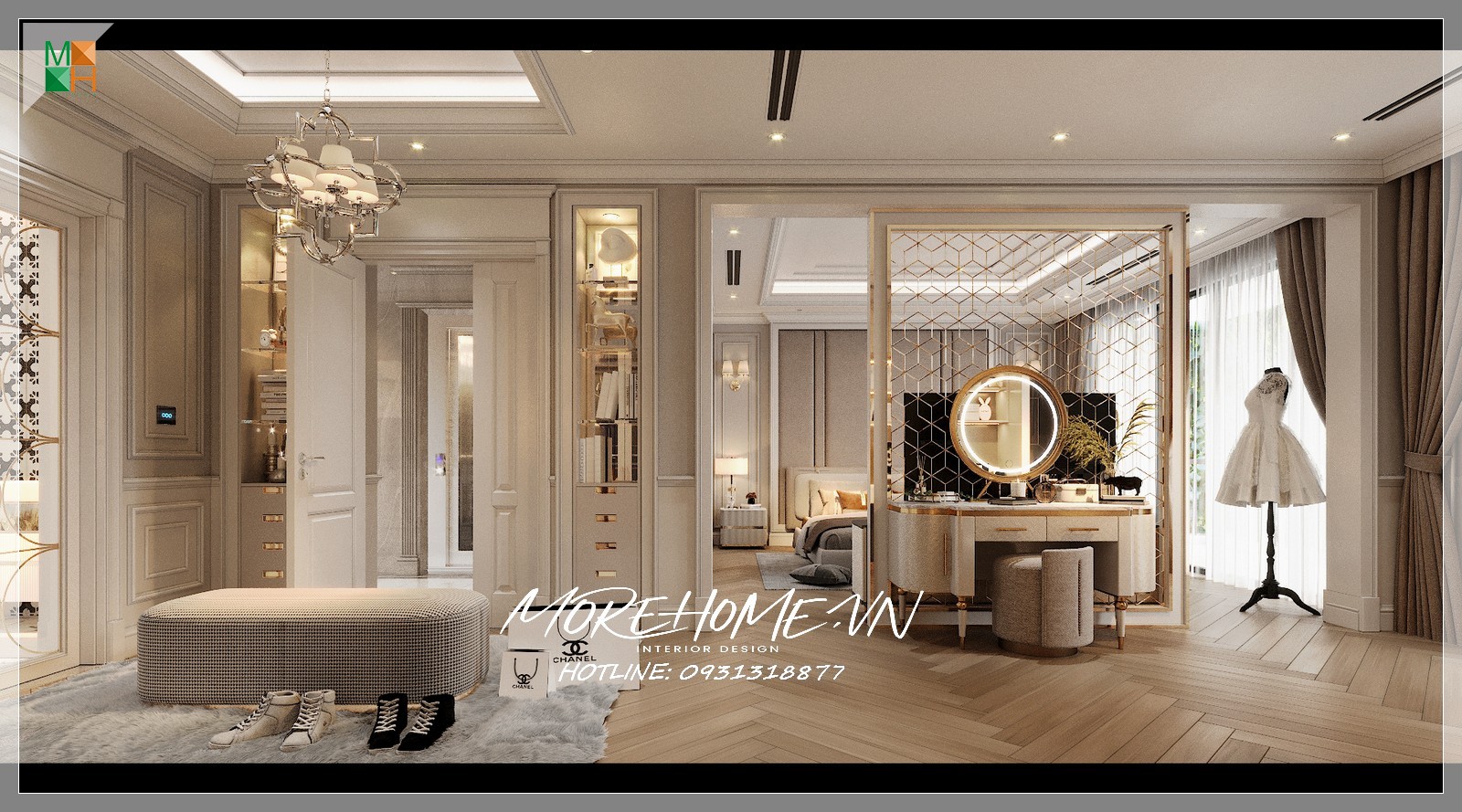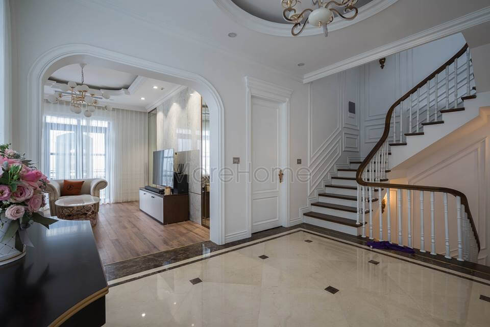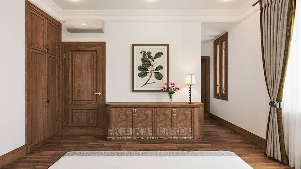 Sản phẩm cửa gỗ hiện đại đẹp bằng gỗ tự nhiên nhập khẩu được Morehome thiết kế và thi công tại biệt thự chùa thầy, quốc oai, hà nội