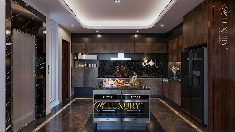 Thiết kế tủ bếp biệt thự cao cấp phong cách tân cổ điển sang trọng