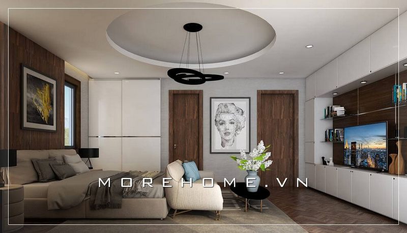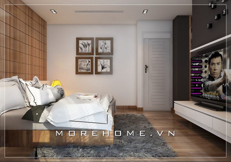 Morehome đưa đến cho bạn mẫu thiết kế phòng ngủ biệt thự đẹp, sang trọng và tinh tế. Chất liệu được sử dụng tại mẫu phòng ngủ hiện đại này chính là chất liệu "gỗ tự nhiên" nhập khẩu cao cấp.