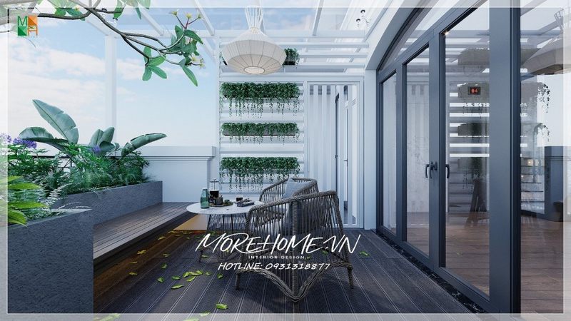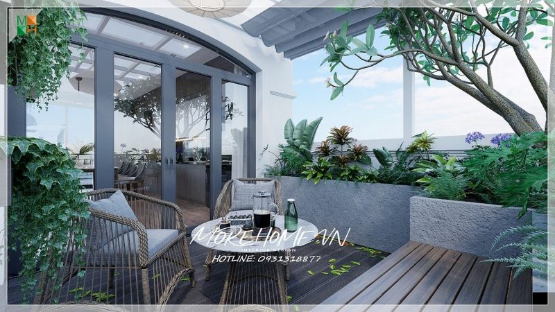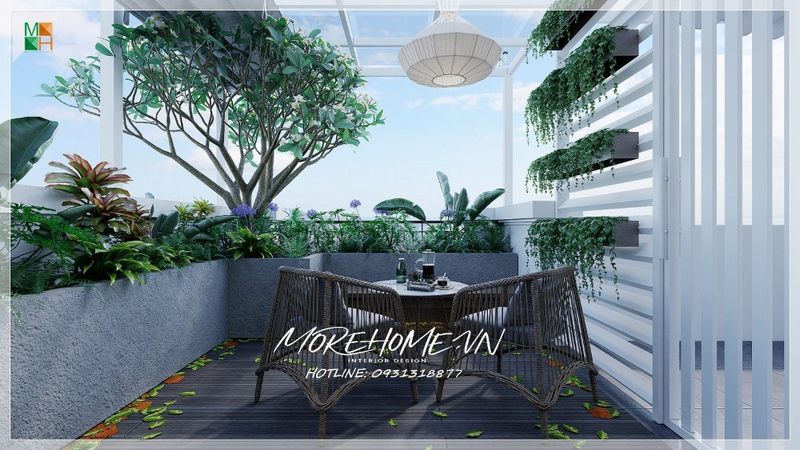 Diện tích không cần quá rộng chỉ với bộ bàn ghế bằng gỗ kiểu dáng hiện đại ngồi nhâm nhi chén trà cốc nước hít khi trời ngắm khung cảnh xunh quanh đem đến tinh thần yêu đời
