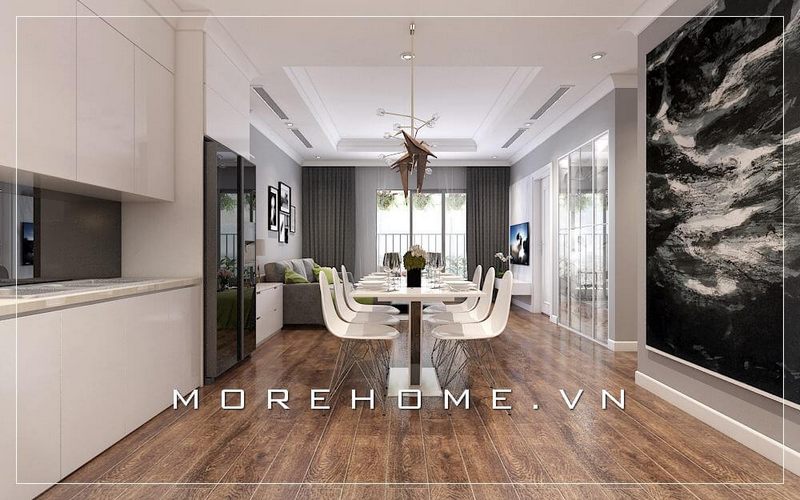 Bàn ăn gỗ công nghiệp luôn là sự lựa chọn hàng đầu cho nội thất nhà ở chung cư hiện đại với vẻ đẹp tinh tế và thời thượng