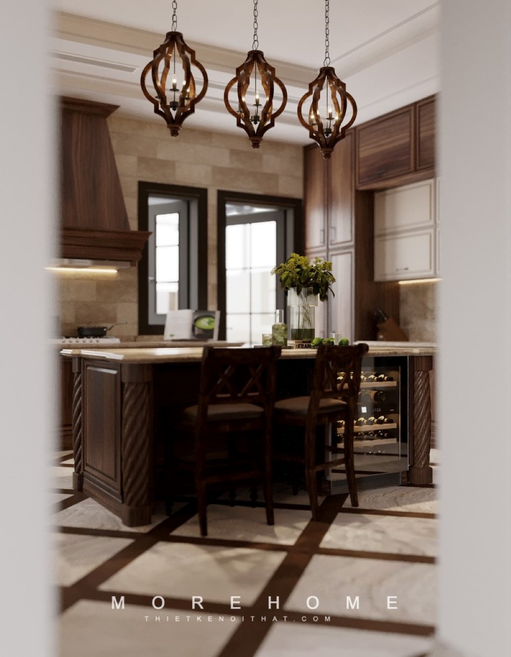 Gạch lát nền giả cổ tạo nét đẹp độc đáo sang trọng cho phòng đọc sách tân cổ điển.