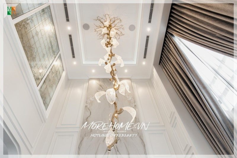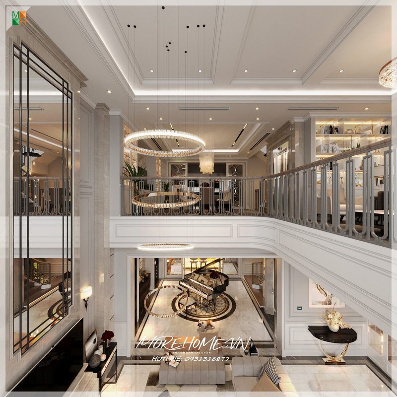 Trang trí nội thất phòng khách thông tầng biệt thự tân cổ điển cao cấp tại Vinhomes Imperia Hải Phòng.