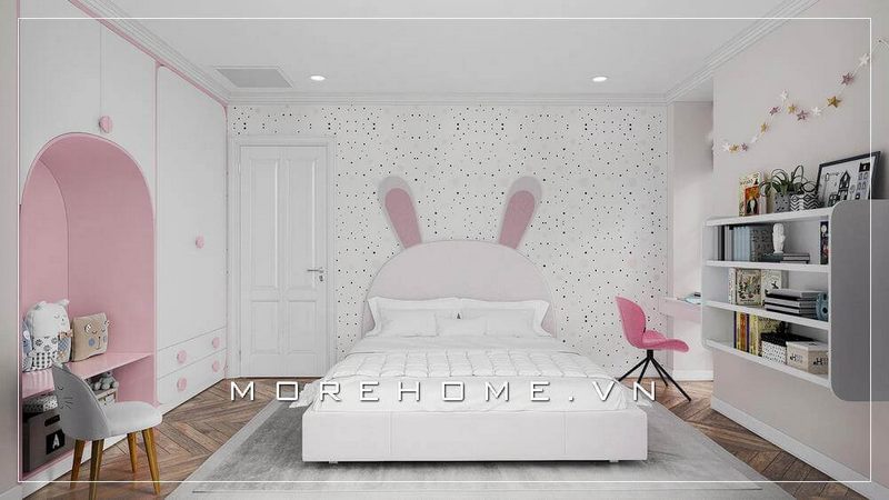 Mẫu giường ngủ hiện đại, thiết kế đầu giường hình thỏ ấn tượng cho phòng ngủ của bé gái